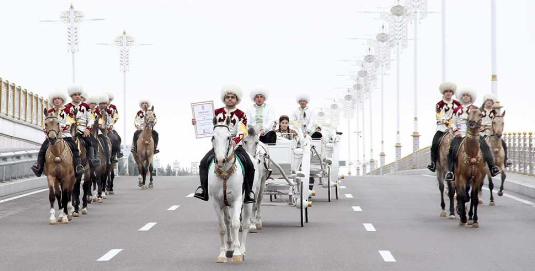 Ajaýyp wakanyň hormatyna guralan çäreler hakyky türkmen toýlaryna mynasyp derejede geçirildi. Oňa gatnaşyjylar şatlyk-şowhunly, aýdym-sazly çykyşlar bilen köprüden düşüp, Akhan şaýolunyň ugrunda saklandylar. Bu ýerde «Galkynyş» milli at üstündäki oýunlar toparynyň agzalary bedewlere atlanyp we paýtun arkaly hatar gurap geçip gitdiler.